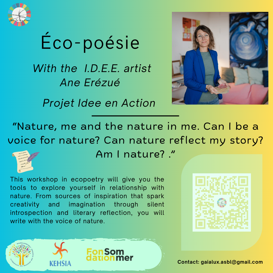 « I.D.E.E. en Action » vise à créer un parcours éducatif autour des enjeux liés à la citoyenneté mondiale, à travers le prisme des Objectifs de Développement Durable (ODD) de l’Agenda 2030 des Nations Unies, à destination des jeunes au Luxembourg. Ce nouveau parcours s’inspire des points clés et des dimensions artistiques du projet I.D.E.E. initial, tout en développant une approche innovante et interdisciplinaire de la durabilité. Il combine expression créative, réflexion scientifique et expériences interactives, pour inviter les participant·es à réfléchir, imaginer et agir autour des grands défis de durabilité sociale, écologique et économique. (En savoir plus sur I.D.E.E. en Action). I.D.E.E. en Action est financé par la Fondation Sommer.